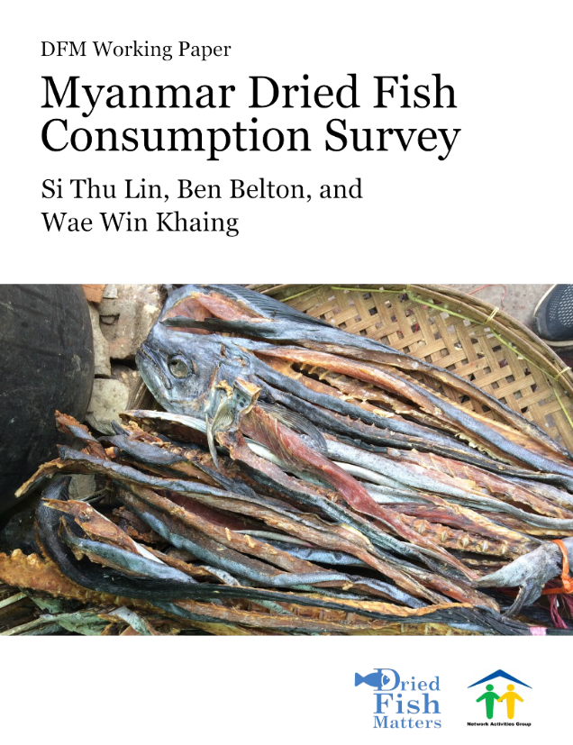 The Myanmar Dried Fish Consumption Survey (MDFCS) was implemented by Network Actions Group, as part of the Dried Fish Matters (DFM) project. This study was confined to the 8 states and regions in Myanmar where NAG offices are located. Data collection was taken between October 2019 and March 2020. The participants in this study were rural people who are living under the scope of NAG project villages. This study mainly focuses on fish (fresh and processed) consumption in the 7 days before the survey and per capita consumption per day, including the source of the consumed fish, location of purchase, method of consumption, and details of the consumed fish species.